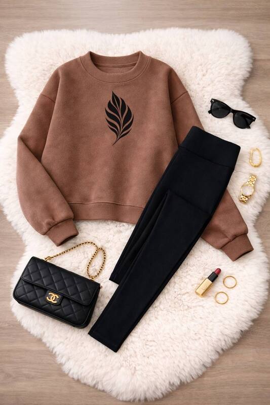 Этот женский костюм-двойка создан для тех дней, когда хочется выглядеть собранно и стильно, но при этом чувствовать максимальный комфорт. Комплект состоит из уютного свитшота и утеплённых лосин — идеальная база для повседневных дел, прогулок и активного ритма, когда важны тепло и свобода движений. Материалы подобраны так, чтобы костюм приятно ощущался на теле, держал форму и сохранял аккуратный вид даже при частой носке.