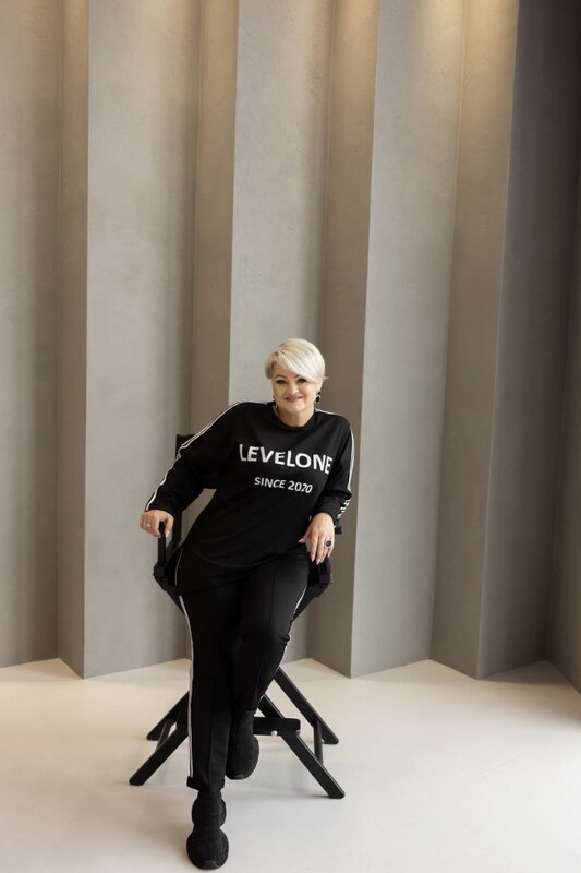 Верх выполнен в формате свободного свитшота с круглой горловиной, длинным рукавом и удлиненной спинкой. Такой крой комфортно садится по фигуре, не обтягивает и помогает мягко прикрыть линию бедер. Надпись на груди добавляет модели современный спортивно-городской акцент.