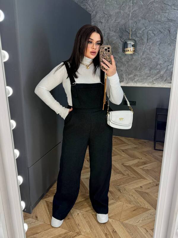 Женский комплект, состоящий из микровельветового комбинезона и базового гольфа из вискозного рубчика, создан для тех, кто ценит стиль и комфорт в повседневной жизни. Комбинезон выполнен в современном крое с регулируемыми бретелями, что позволяет подстроить посадку по фигуре, а широкие штанины обеспечивают свободу движений и формируют изящный силуэт. Глубокий цвет ткани добавляет образу элегантности и универсальности, позволяя легко комбинировать с различной обувью и аксессуарами.