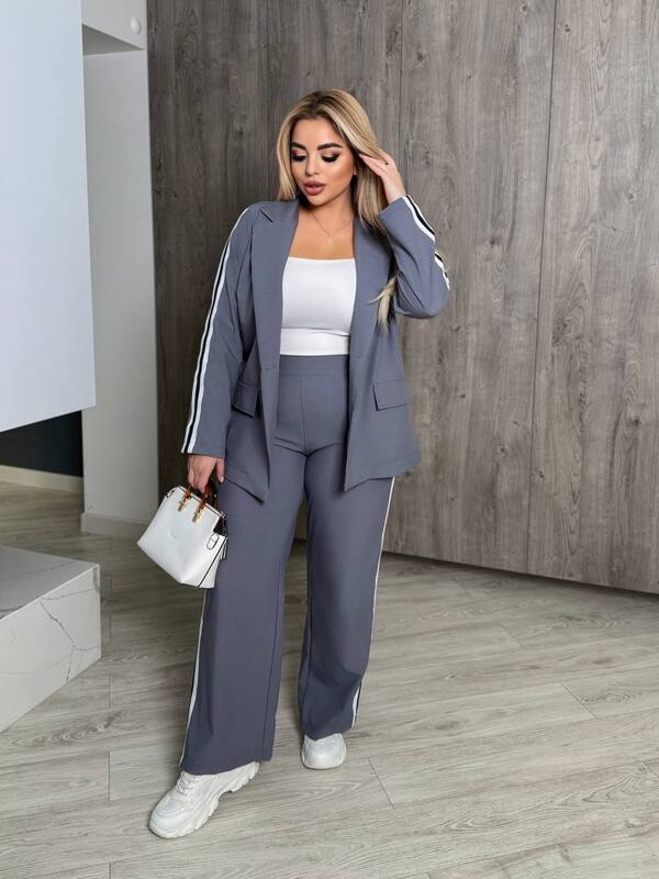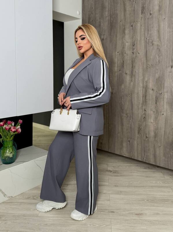 Отзывы о Костюм-двойка женский из ткани тиар с лампасами: пиджак и прямые брюки осенний k-123218