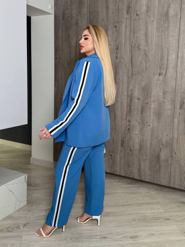 Отзывы о Костюм-двойка женский из ткани тиар с лампасами: пиджак и прямые брюки осенний k-123217