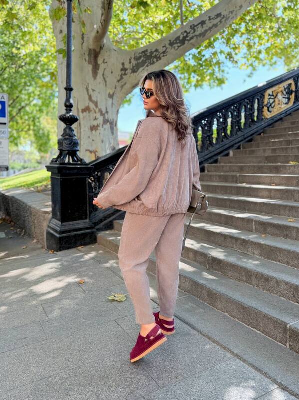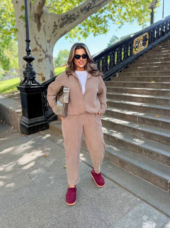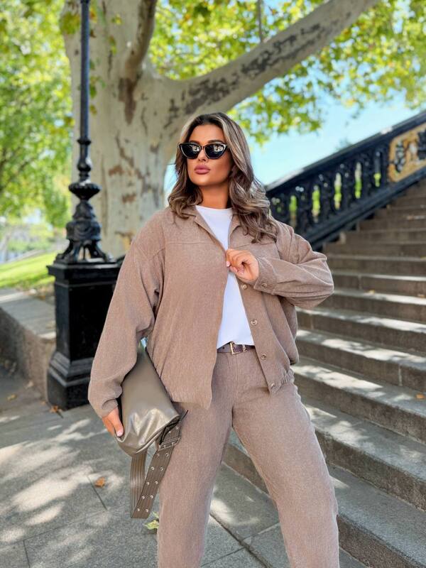 Вельвет остаётся в числе самых модных материалов сезона, добавляя образу теплоты и стиля. Такой костюм прекрасно подойдёт для прогулок, повседневных дел, работы в неформальной атмосфере или встреч с друзьями. Его универсальность позволяет легко менять настроение образа — от casual до более элегантного smart-casual.