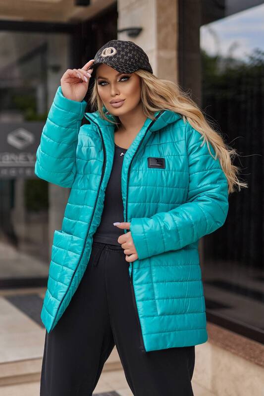 Отзывы о Куртка женская демисезонная бирюзовая стёганая с капюшоном из плащевки утеплённая синтепоном средняя k-123700