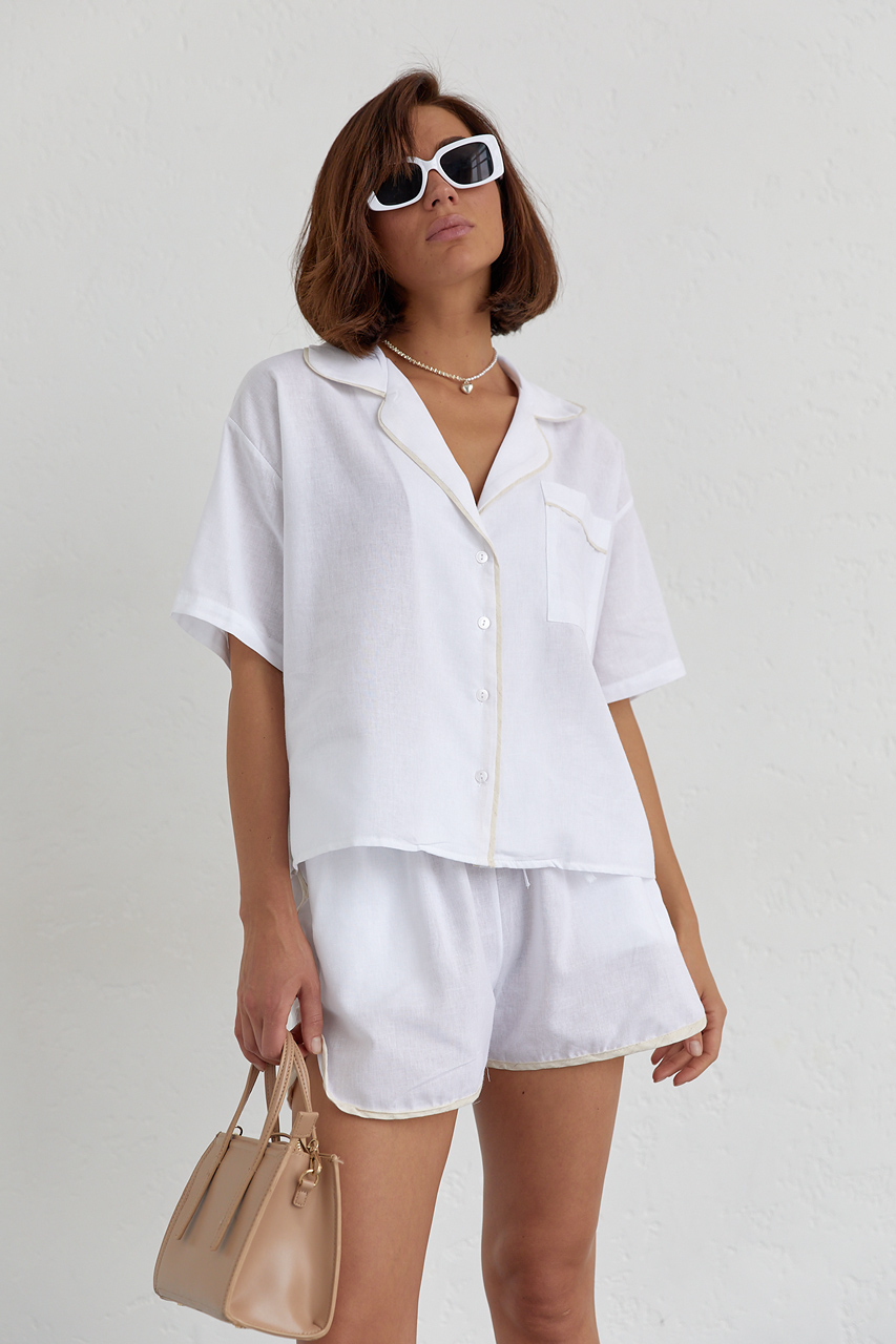 Літній костюм із шортами на зав'язках та сорочкою Ls-1242