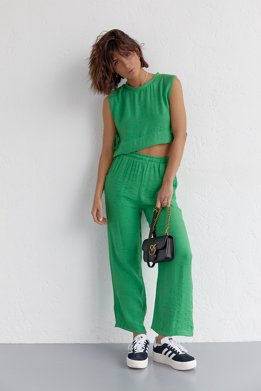 Размер L:Довжина переду виробу, см: 40смШирина під проймами рукавів (над грудьми), см: 46смШирина по стегнам: 54смДовжина по боковому шву, см: 96смДовжина по внутрішньому шву, см: 66смШирина по талії/поясу, см: 36смРазмер M:Довжина переду виробу, см:.. Читать полностью