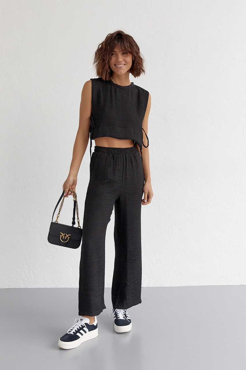Размер L:Довжина переду виробу, см: 40смШирина під проймами рукавів (над грудьми), см: 46смШирина по стегнам: 54смДовжина по боковому шву, см: 96смДовжина по внутрішньому шву, см: 66смШирина по талії/поясу, см: 36смТвій готовий літній look на всі вип.. Читать полностью