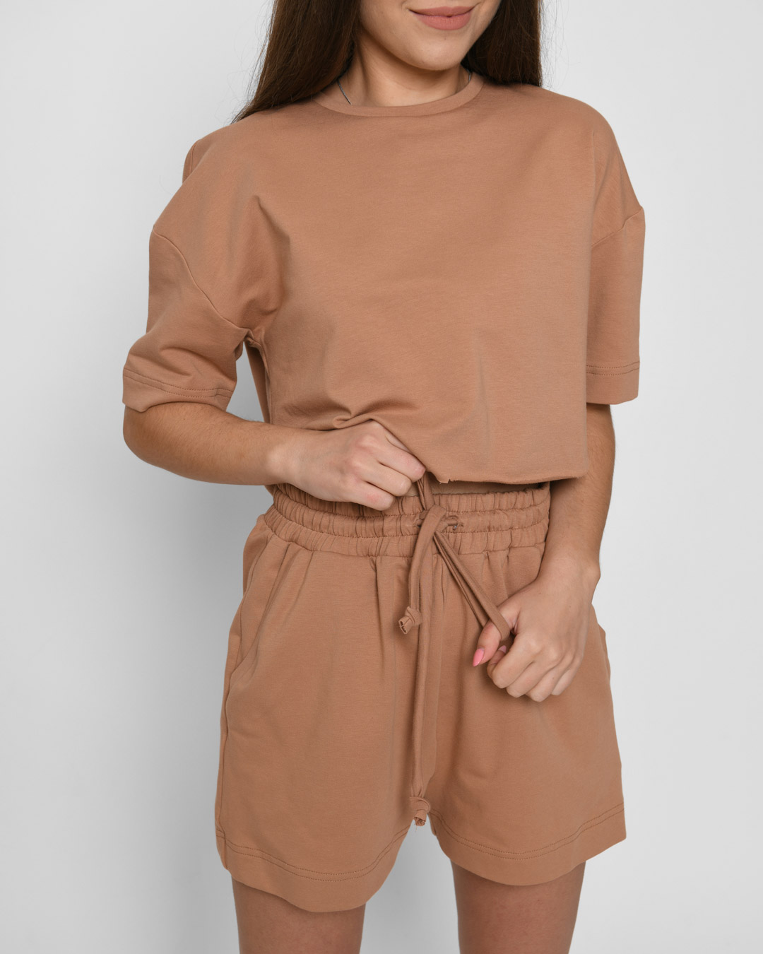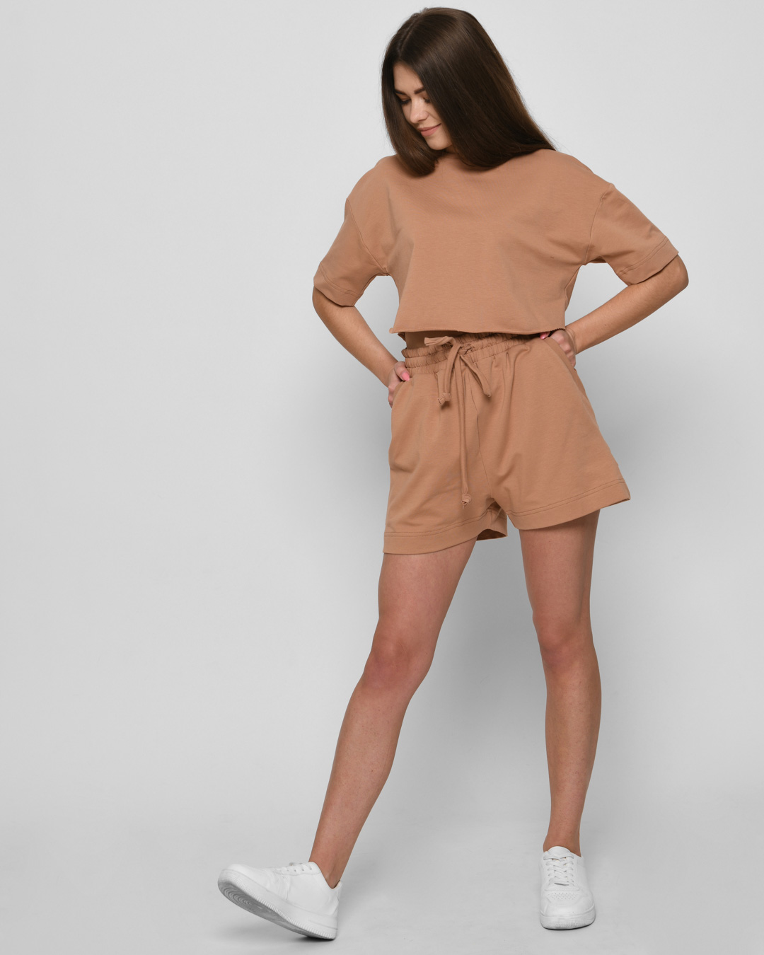 Доступные размеры :[XS, S, M, L] Размер XS:Рост модели:170 смДлина внешнего шва:41Длина изделия:42Длина плеча:19Длина рукава:18Обхват бедер:104Обхват груди:100Обхват талии:62Ширина плечей:52Ширина штанины:32Размер S:Рост модели:170 смДлина внешнего ш.. Читать полностью