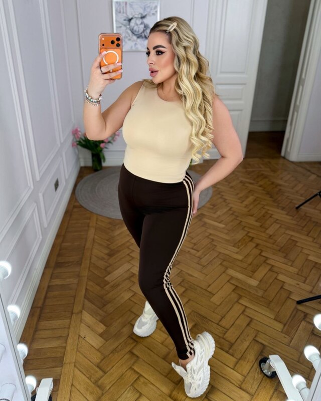 Модель выполнена в облегающем крое с акцентными лампасами по бокам, благодаря чему лосины смотрятся более собранно и визуально вытягивают силуэт. Такая деталь делает базовую вещь более стильной и современной, поэтому модель легко впишется как в повседневный гардероб, так и в образы в спортивном стиле.