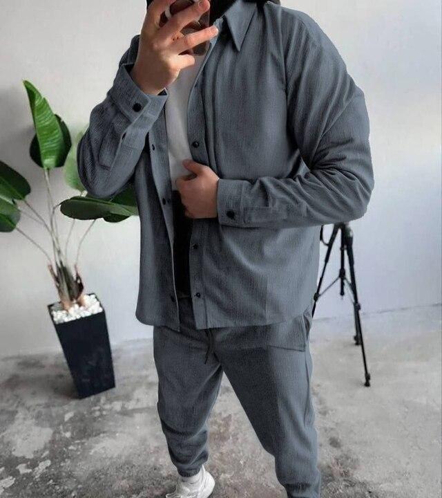 Мужской костюм-двойка с рубашкой и брюками — это стильный и удобный комплект, который отлично подходит для повседневной носки, прогулок, поездок и комфортных городских образов. Такой костюм смотрится современно, собранно и уверенно, при этом не требует сложного подбора вещей, потому что уже представляет собой готовое гармоничное сочетание. Это удачное решение для мужчин, которые ценят практичность, комфорт и актуальный внешний вид в одном комплекте.