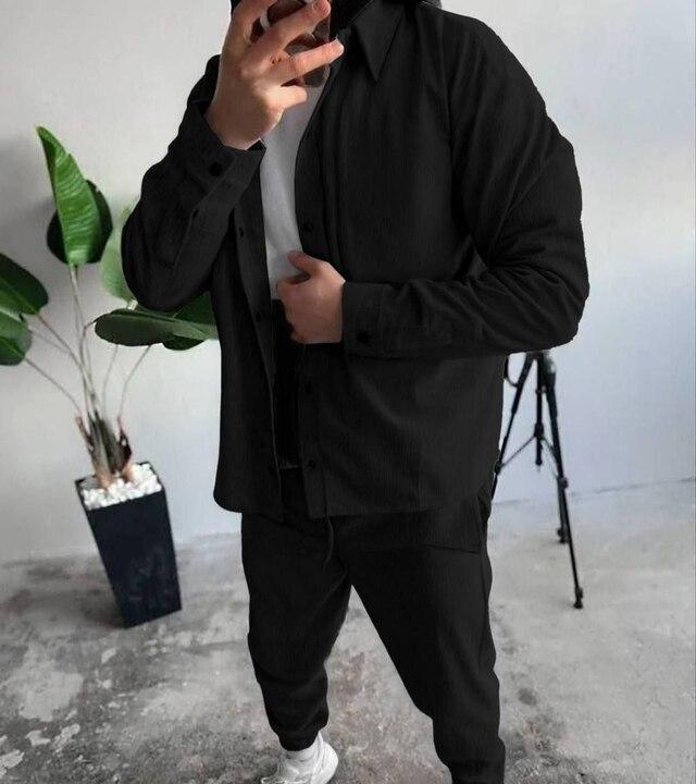 Мужской костюм-двойка с рубашкой и брюками — это удачное сочетание комфорта, современного силуэта и практичности на каждый день. Комплект смотрится собранно, стильно и уверенно, поэтому отлично подходит для мужчин, которые ценят удобные вещи с аккуратной посадкой и актуальной фактурой. Такой костюм легко вписывается в повседневный гардероб, помогает быстро собрать цельный образ и при этом остается максимально удобным для активного ритма жизни.