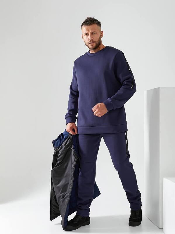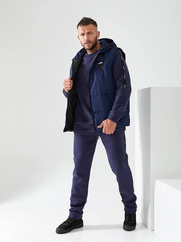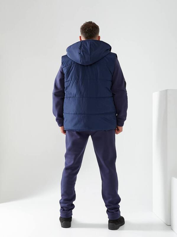 Глубокий синий цвет добавляет модели универсальности, позволяя легко сочетать костюм с кроссовками, ботинками или повседневной обувью. Это практичный и современный вариант для мужчин, которые ценят тепло, функциональность и стиль. Костюм-тройка подойдет как для спорта, так и для создания удобных повседневных образов.