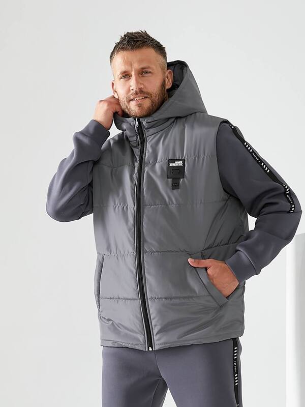 Жилет выполнен из прочной плащевки Canada с утеплителем синтепон 150 и подкладкой из полиэстера. Простеганная поверхность обеспечивает равномерное распределение утеплителя и долговечность изделия. Жилет оснащен удобными боковыми карманами и капюшоном, который защищает от ветра и делает образ более динамичным. Его можно носить как вместе с костюмом, так и отдельно.