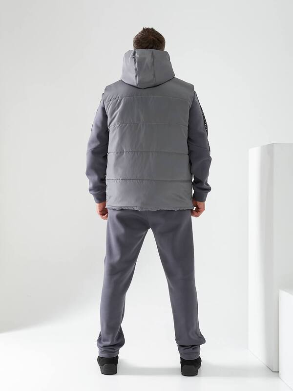 Графитовый цвет костюма универсален и легко сочетается с разной обувью и верхней одеждой. Костюм-тройка идеально подойдет для прогулок, встреч, поездок или активного отдыха. Он станет надежным выбором для мужчин, которые ценят комфорт, тепло и современный стиль в одной модели.