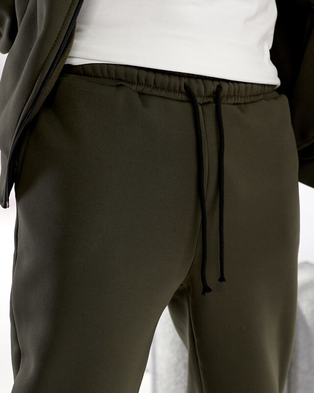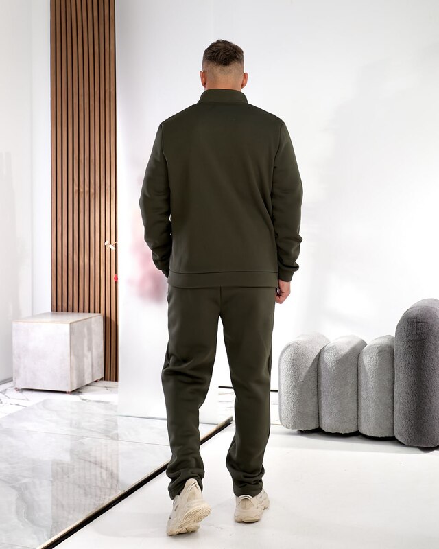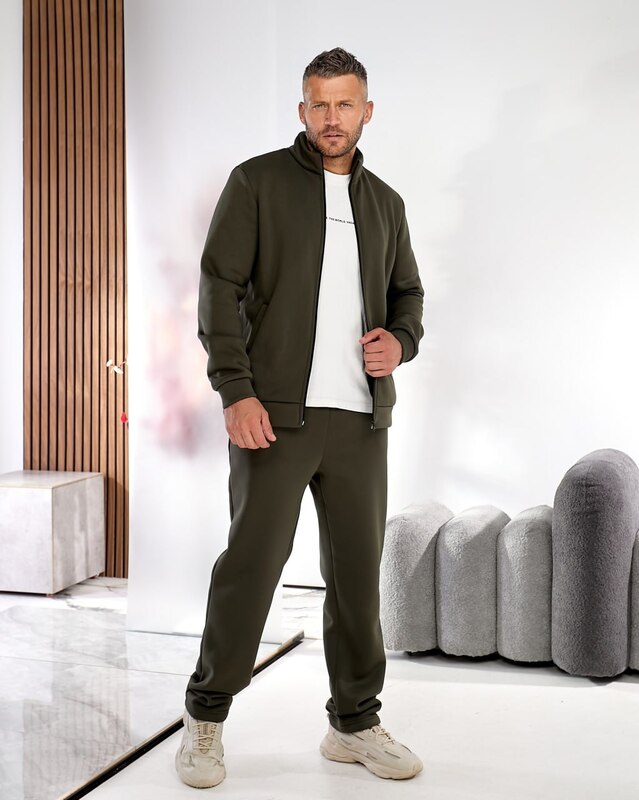 Цвет хаки придаёт изделию трендовую нотку, делая его особенно актуальным и практичным. Он отлично сочетается с базовыми оттенками и добавляет образу мужественности и стиля. Этот костюм — удачный выбор для тех, кто ценит тепло, удобство и современный минимализм в одежде.