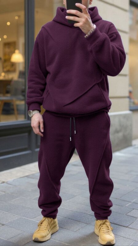 Мужской спортивный костюм из двустороннего полар-флиса — практичный и комфортный вариант для холодного сезона. Ткань мягкая и теплая, отлично сохраняет тепло и позволяет телу дышать, обеспечивая уют в любую погоду. Лаконичный дизайн и плотный материал делают костюм универсальным решением для повседневной носки, прогулок и активного отдыха.