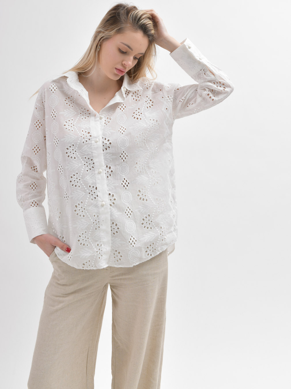 Доступные размеры :[S] Размер S:Длина изделия:70Длина рукава:51Обхват груди:54Ширина плечей:50Легкая льняная рубашка – идеальный выбор для теплых дней. Простой крой, удлиненная спинка и разрезы по бокам делают ее удобной и стильной. Белый цвет придае.. Читать полностью