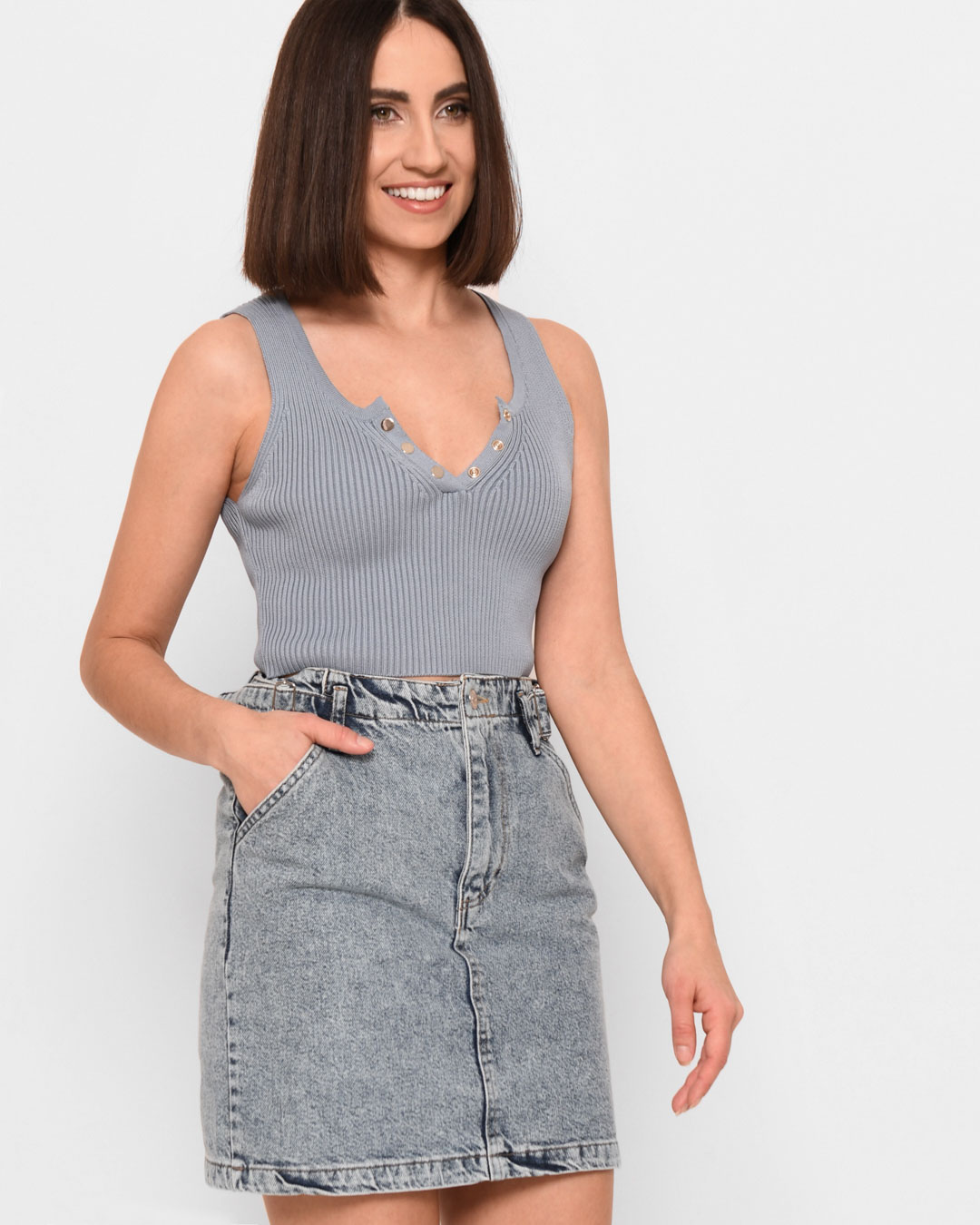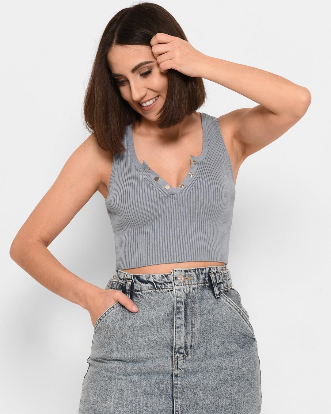 Доступные размеры :[ONE SIZE] Размер ONE SIZE:Рост модели:170 смДлина изделия:38Стильный топ из мягкой и приятной к телу ткани. Спереди вырез на бретельках и застежка на пуговицах. Облегающий силуэт сядет по фигуре. Сочетайте с любимыми брюками или ш.. Читать полностью