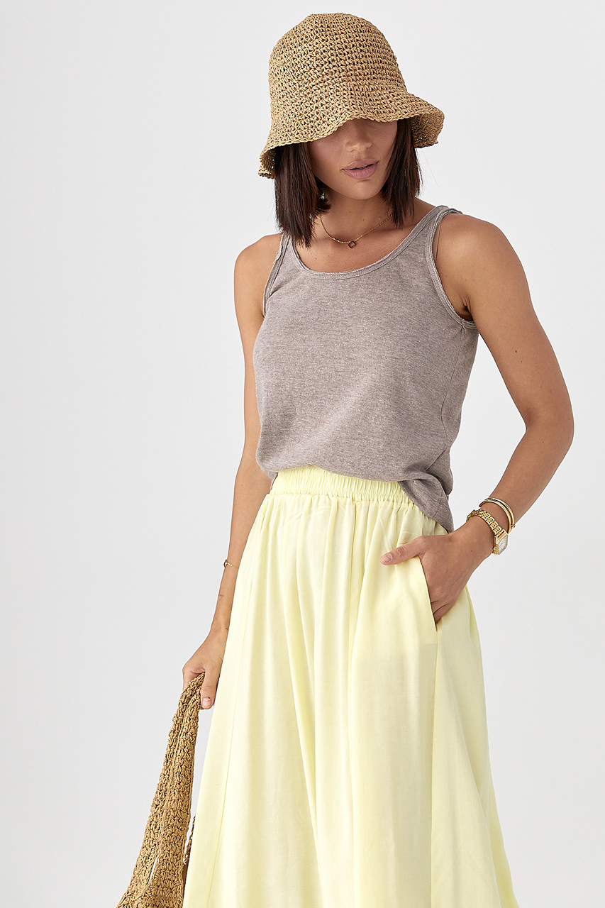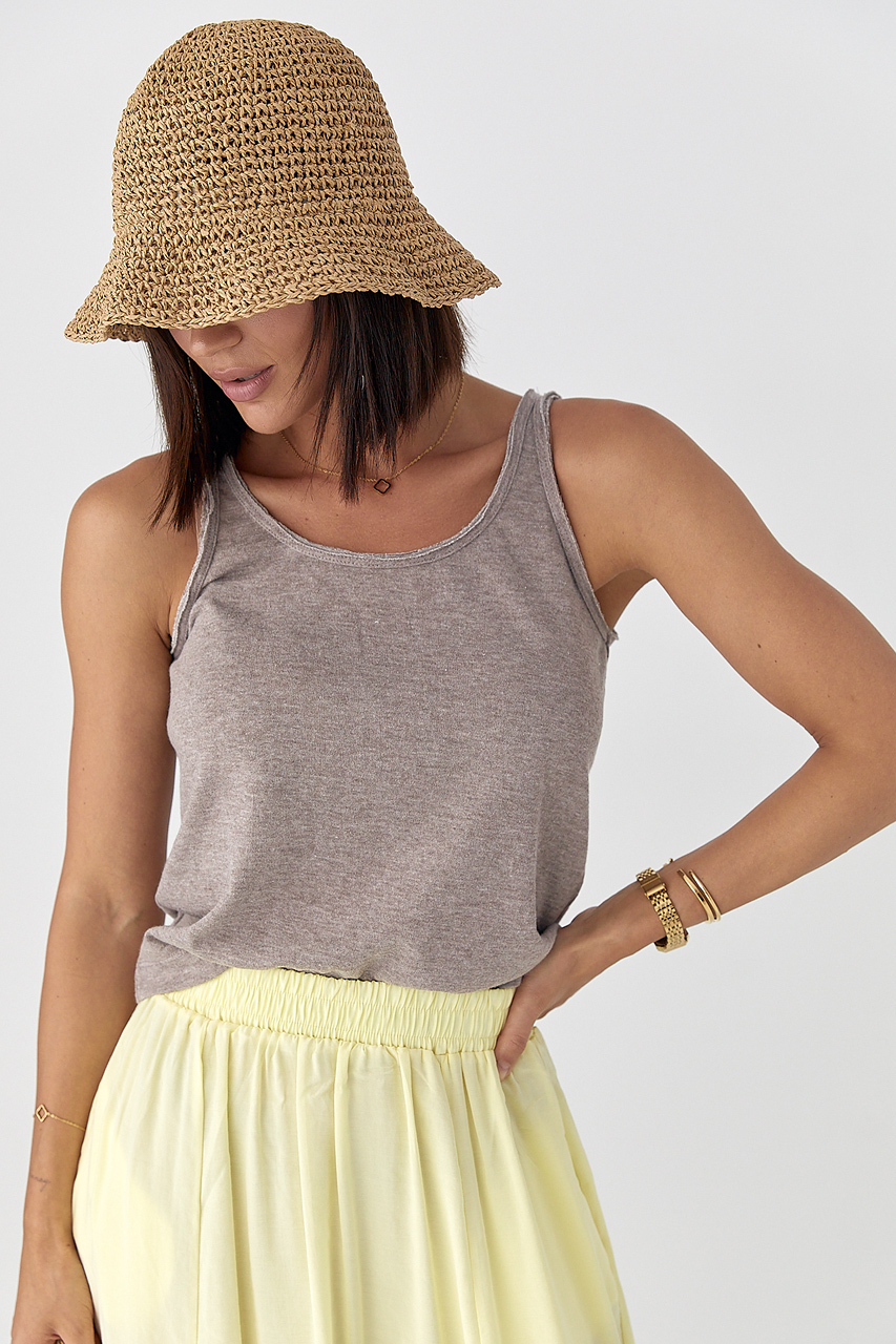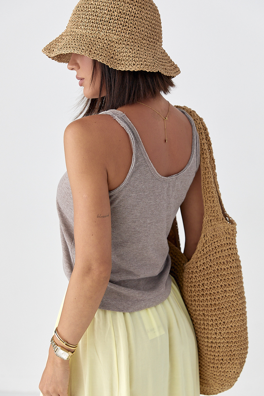 Доступные размеры :[S] Размер S:Довжина переду виробу, см: 51смШирина під проймами рукавів (над грудьми), см: 42смДовжина по боковому шву, см: 31смОднотонна жіноча майка з необробленою окантовкою — це стильна базова річ із легкою ноткою недбалості. В.. Читать полностью