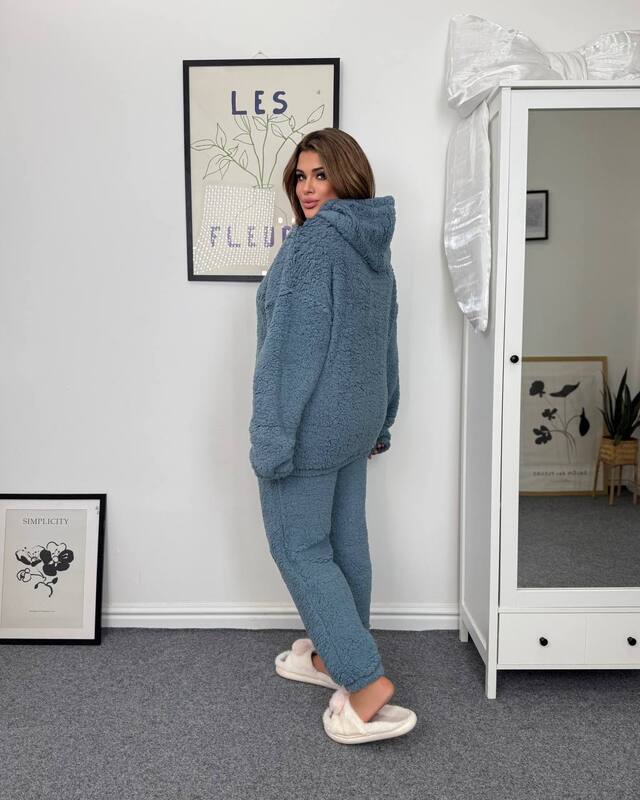 Эта пушистая махровая пижама создана для тех, кто ценит мягкость, тепло и абсолютный домашний комфорт. Модель выполнена из плотной пухнастой махры, которая сразу создаёт ощущение уюта, нежно согревает и помогает расслабиться после долгого дня. Благородная текстура материала обеспечивает лёгкое воздушное объятие, сохраняя тепло и делая комплект идеальным выбором для холодного осенне-зимнего сезона.