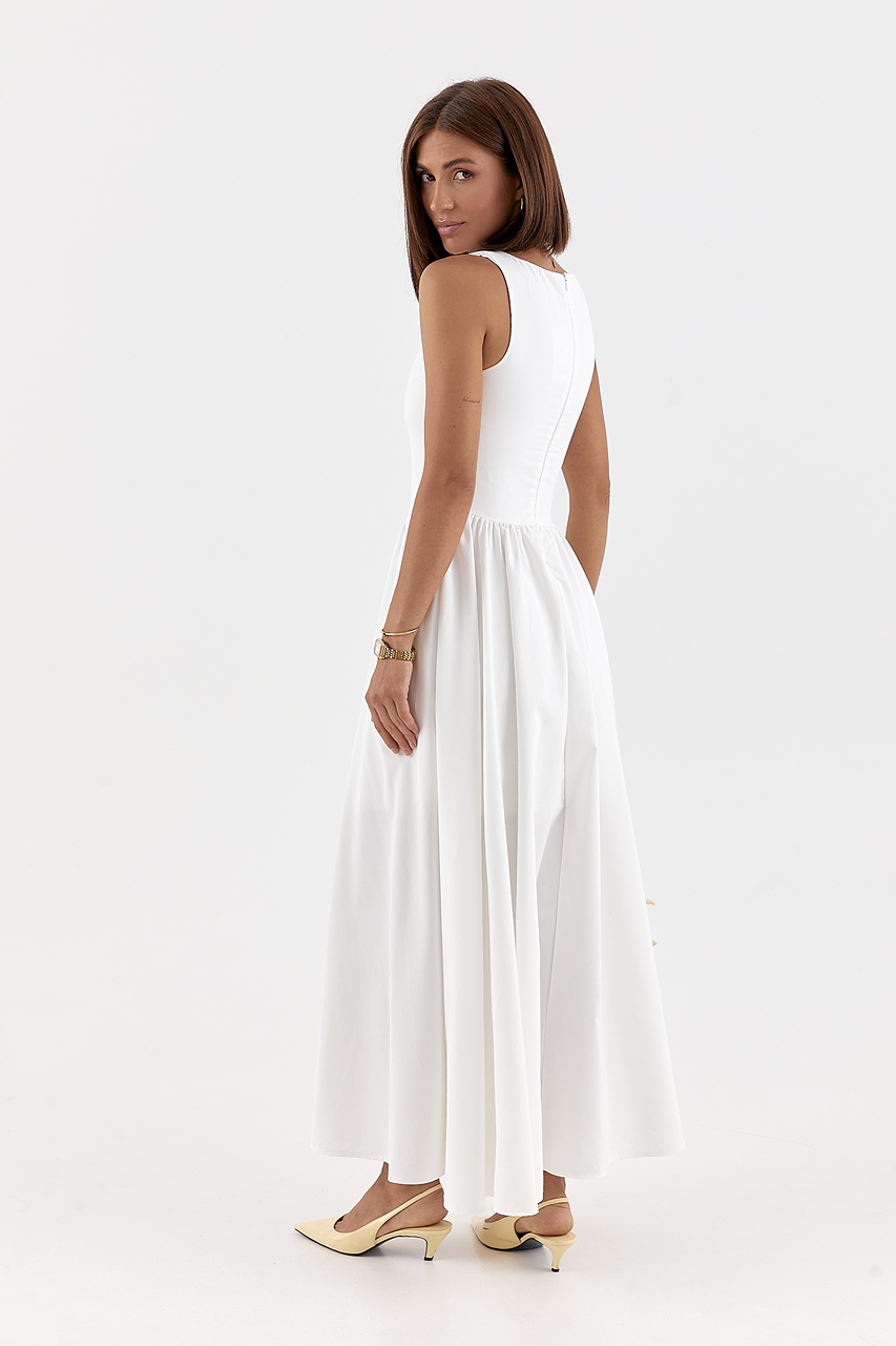 Доступные размеры :[S, M, L] Колір:молочнийЗастібка:блискавкаВізерунок:однотоннийСклад тканини:83% бавовна, 17% поліестерФасон:мідіСезон:ЛітоСтиль:романтичнийТканина:БавовнаРозмір на фото:SКлас:Середній класПараметри моделі:86*60*92 зріст 173Країна:Т.. Читать полностью