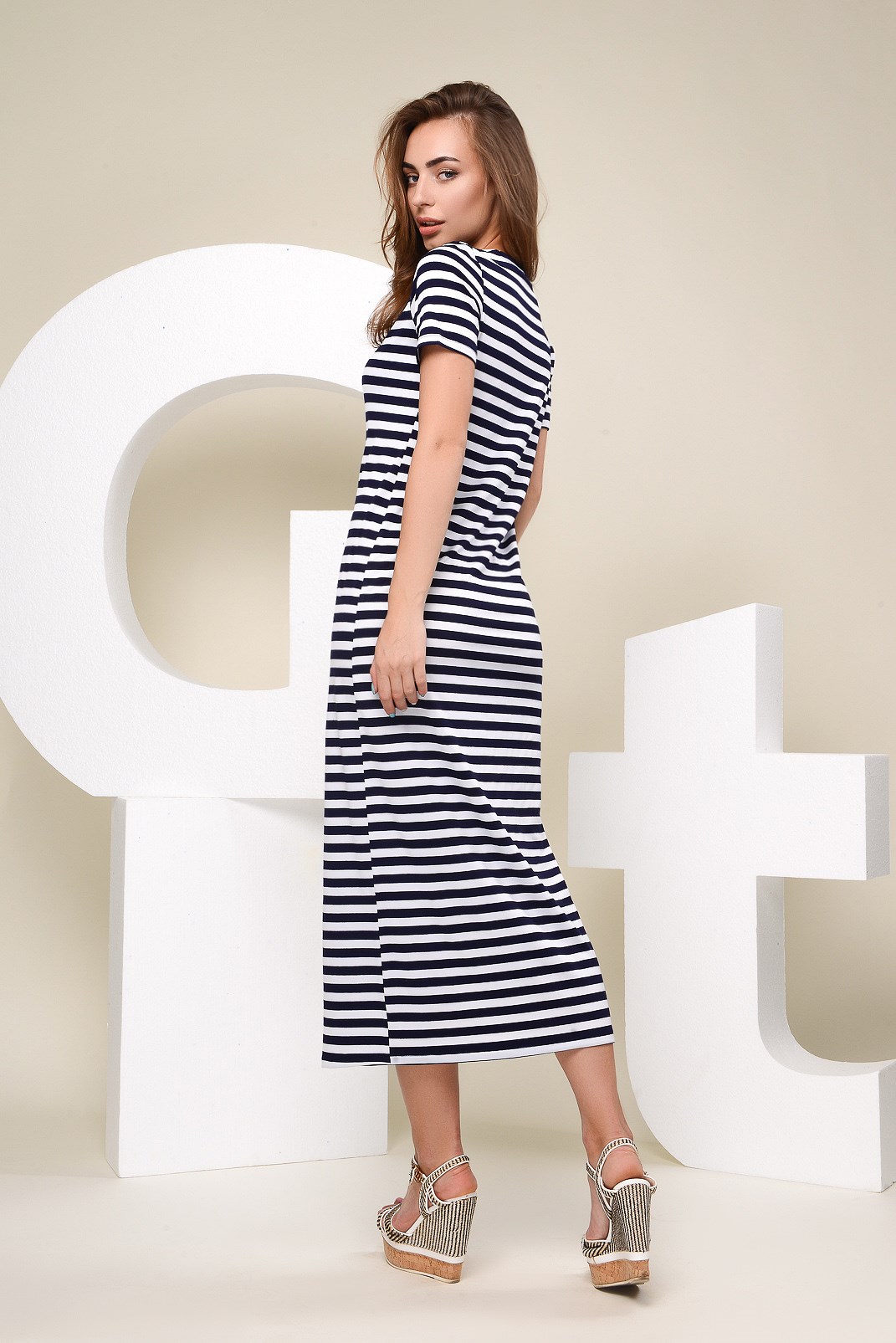 Доступные размеры :[XS] Размер XS:Длина изделия:120Длина рукава:19Обхват бедер:88Обхват груди:84Обхват талии:78Это трикотажное платье макси выглядит просто, но стильно. Прямой крой обеспечивает удобство, а горизонтальная полоска на ткани добавляет ор.. Читать полностью