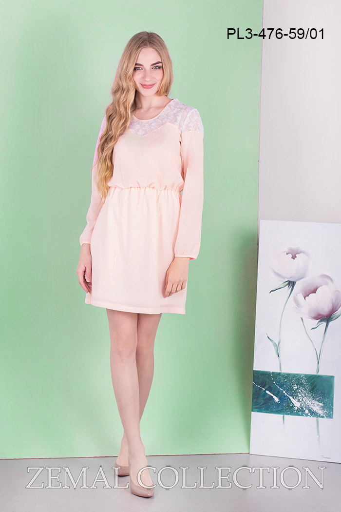 Доступные размеры :[46] Платье свободного силуэта выполнено из шелка с отделкой из гипюра. Отрезное по линии талии. Талия собрана на резинку. Рукав длинный, понизу обработан кантом. Юбка на подкладкеПроизводство: УкраинаСезон: весна,летоТкань: креп-ш.. Читать полностью