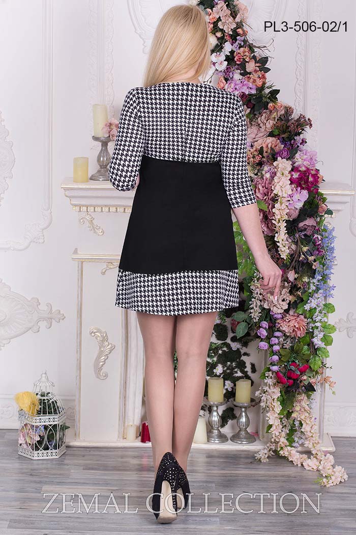 Доступные размеры :[44] Платье из французского трикотажа трапециевидного силуэта, выполнено в сочетании 2-х цветов. Талия завышена. Спереди по линии верхнего подреза декорировано кружевом. Рукав ¾. Застёжка на потайную молнию в среднем шве спинкиПрои.. Читать полностью