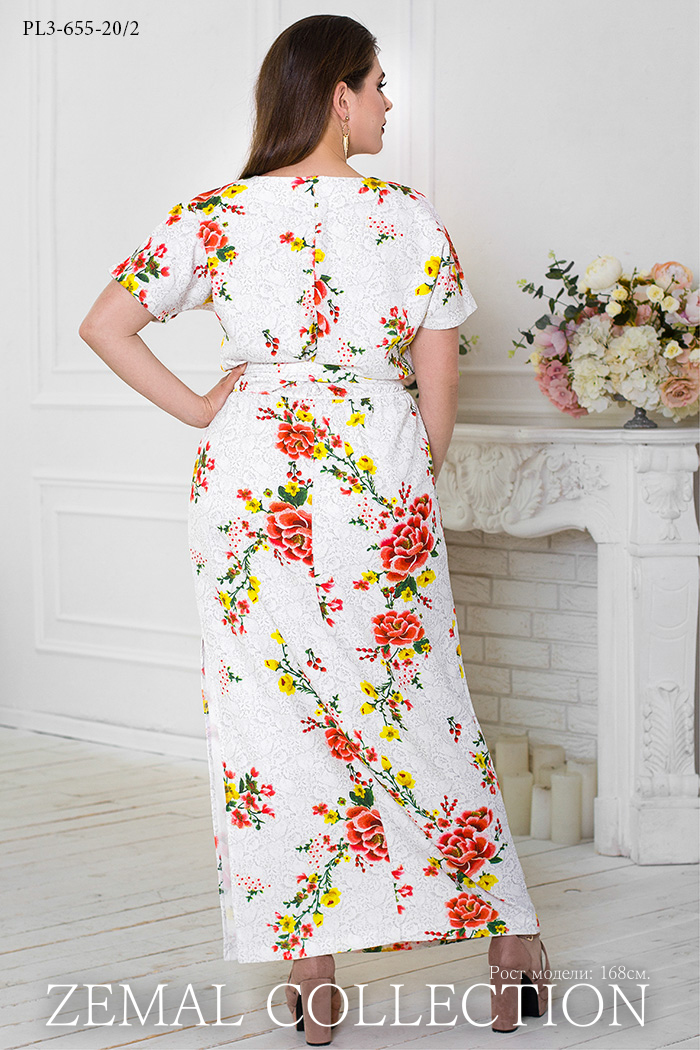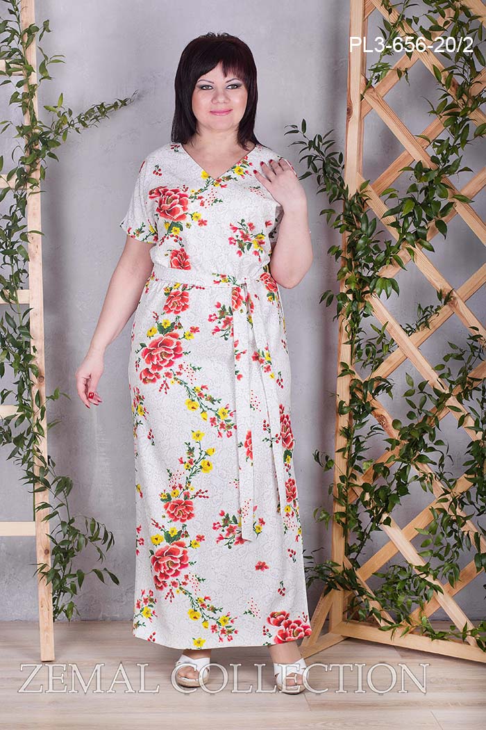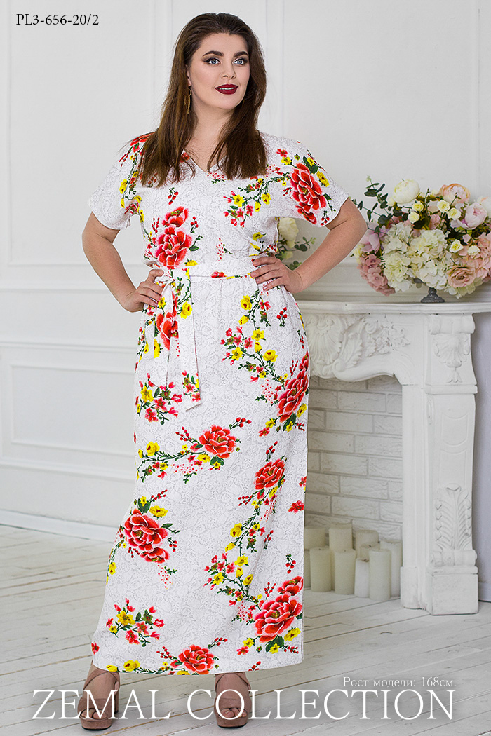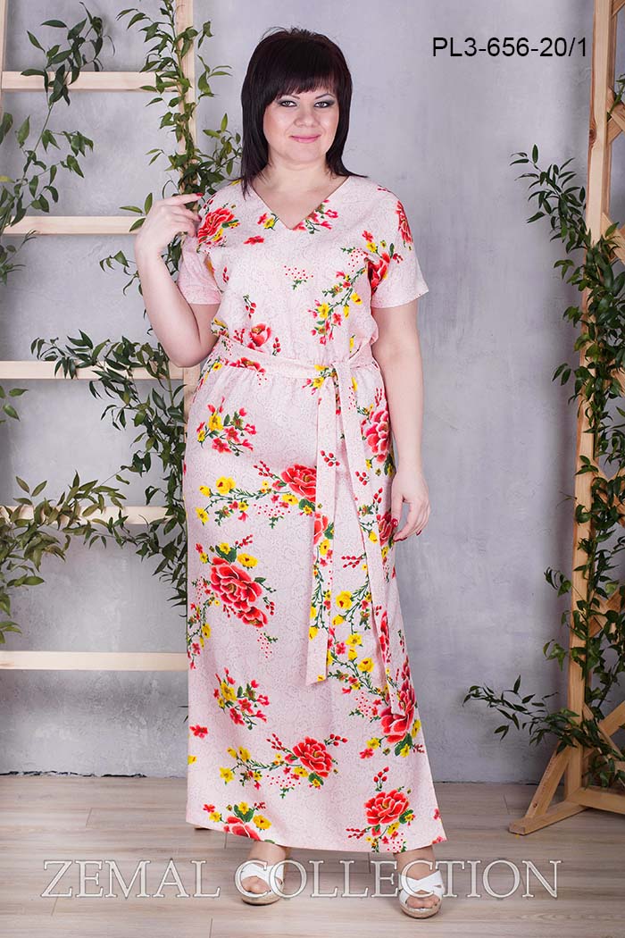 Доступные размеры :[52, 54, 56, 58, 60, 62] Платье в пол свободного силуэта. Рукав короткий – кимоно. Линия талии отрезная на резинке. В боковом шве с левой стороны разрез до колен. Горловина V-образная. По спинке средний шовПроизводство: УкраинаСезо.. Читать полностью