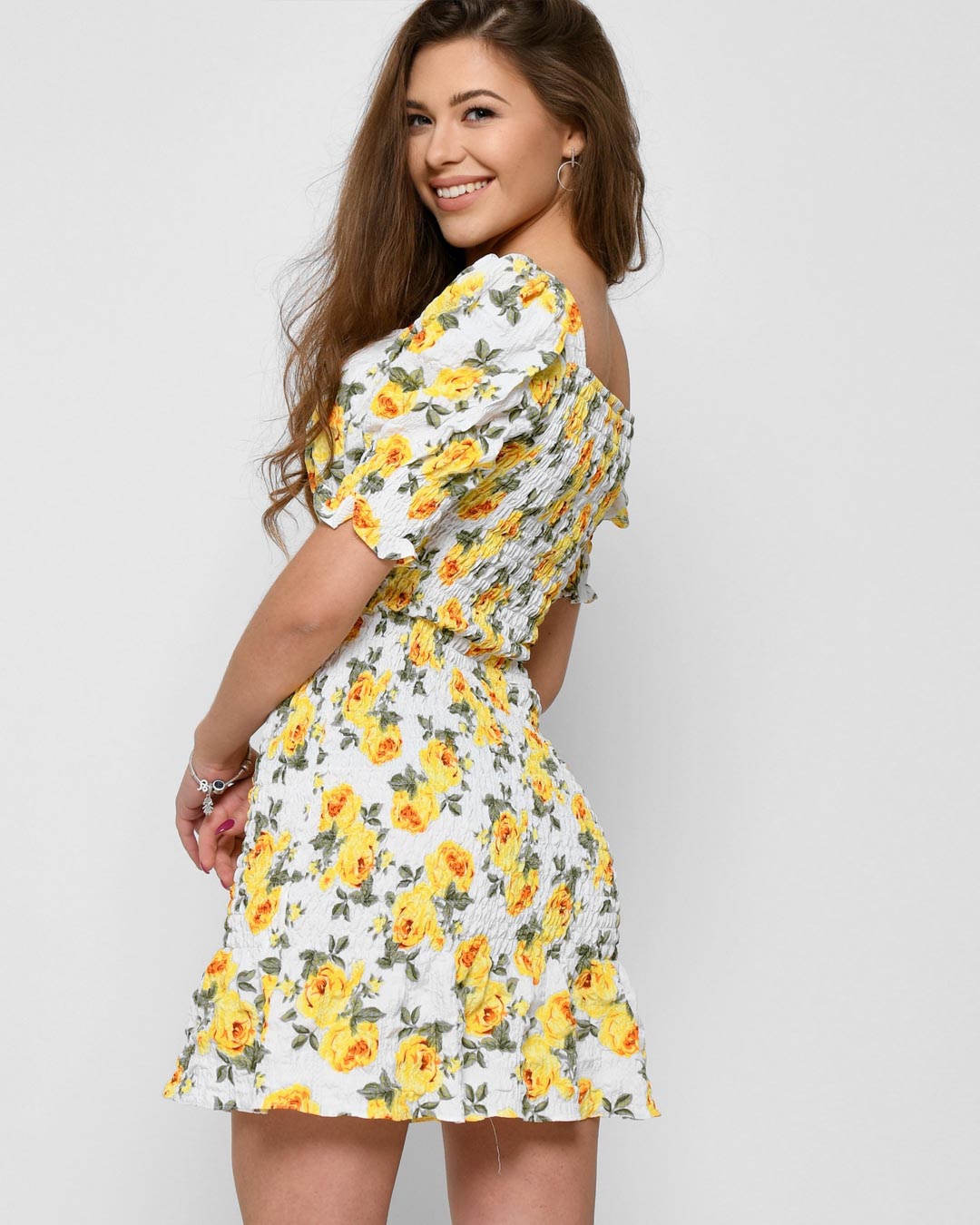 Доступные размеры :[M] Размер M:Рост модели:167 смДлина изделия:70Длина рукава:29Платье-резинка. Подробности: короткая длина, объемные рукава, v-образный вырез. Такое платье подходит для прогулки, романтического свидания или праздничного события.Моде.. Читать полностью