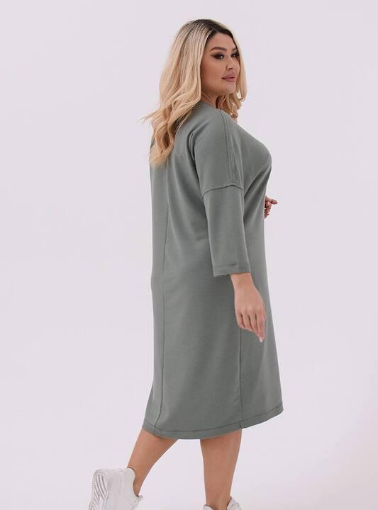 Прямой силуэт визуально делает образ более вытянутым и гармоничным, а длина миди добавляет практичности и делает модель уместной для самых разных ситуаций. Платье отлично подойдет для прогулок, поездок, встреч, работы, повседневных дел и тех случаев, когда хочется выглядеть аккуратно без лишних усилий. Свободная посадка помогает скрыть нюансы фигуры, которые не хочется подчеркивать, и именно поэтому такая модель особенно удачно смотрится в размере plus size. Рукав комфортной длины делает образ завершенным и удобным для активного дня.