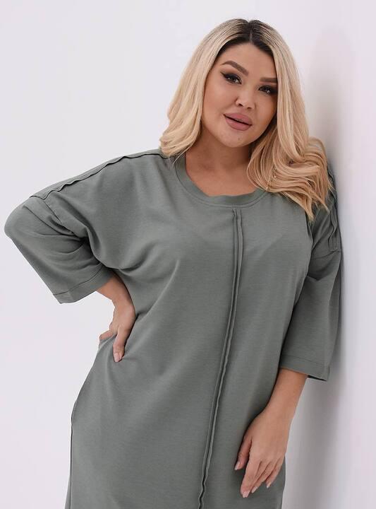 Стильное женское платье большого размера — это удачное сочетание комфорта, лаконичного дизайна и современной повседневной подачи. Модель выполнена в прямом крое, благодаря чему платье мягко садится по фигуре, не сковывает движения и помогает чувствовать себя уверенно в течение всего дня. Такой фасон особенно ценят за его универсальность, потому что он аккуратно смотрится на разных типах фигуры, не перегружает образ и позволяет легко создавать собранные, удобные и женственные повседневные комплекты.