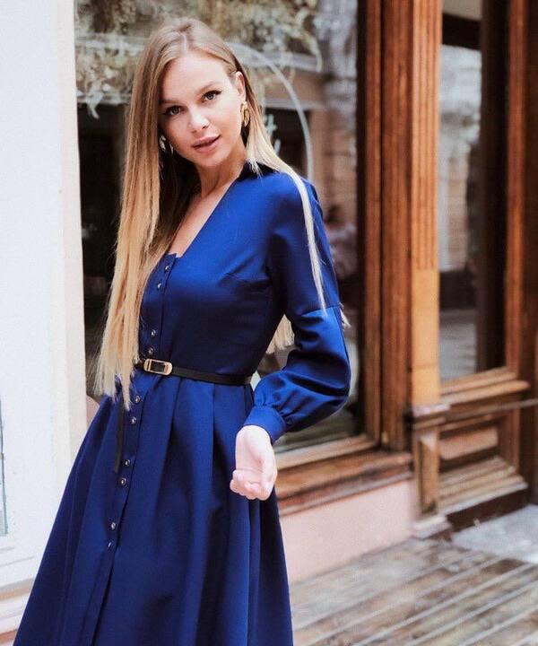- По фото видно, что платье имеет красивый приталенный силуэт с легким расклешением книзу, благодаря чему образ получается женственным и мягким. Вертикальный ряд пуговиц визуально вытягивает силуэт, делает фигуру стройнее и добавляет модели аккуратный классический акцент. Отдельного внимания заслуживает пояс: он идет отдельно, позволяет красиво подчеркнуть талию и менять настроение образа в зависимости от желаемой посадки. С поясом платье выглядит более собранно и выразительно, а без него может смотреться свободнее и расслабленнее.