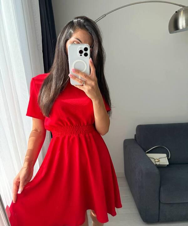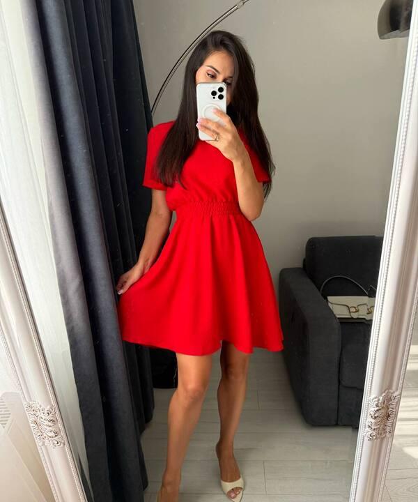 Короткий рукав делает платье удобным для весеннего гардероба, а длина мини добавляет образу свежести, легкости и динамики. Акцент на талии делает силуэт более женственным, красиво подчеркивает фигуру и помогает сохранить баланс между комфортом и выразительностью. Расклешенный низ не сковывает движения, поэтому в таком платье удобно проводить целый день — гулять, встречаться, ездить по делам, работать или отдыхать.