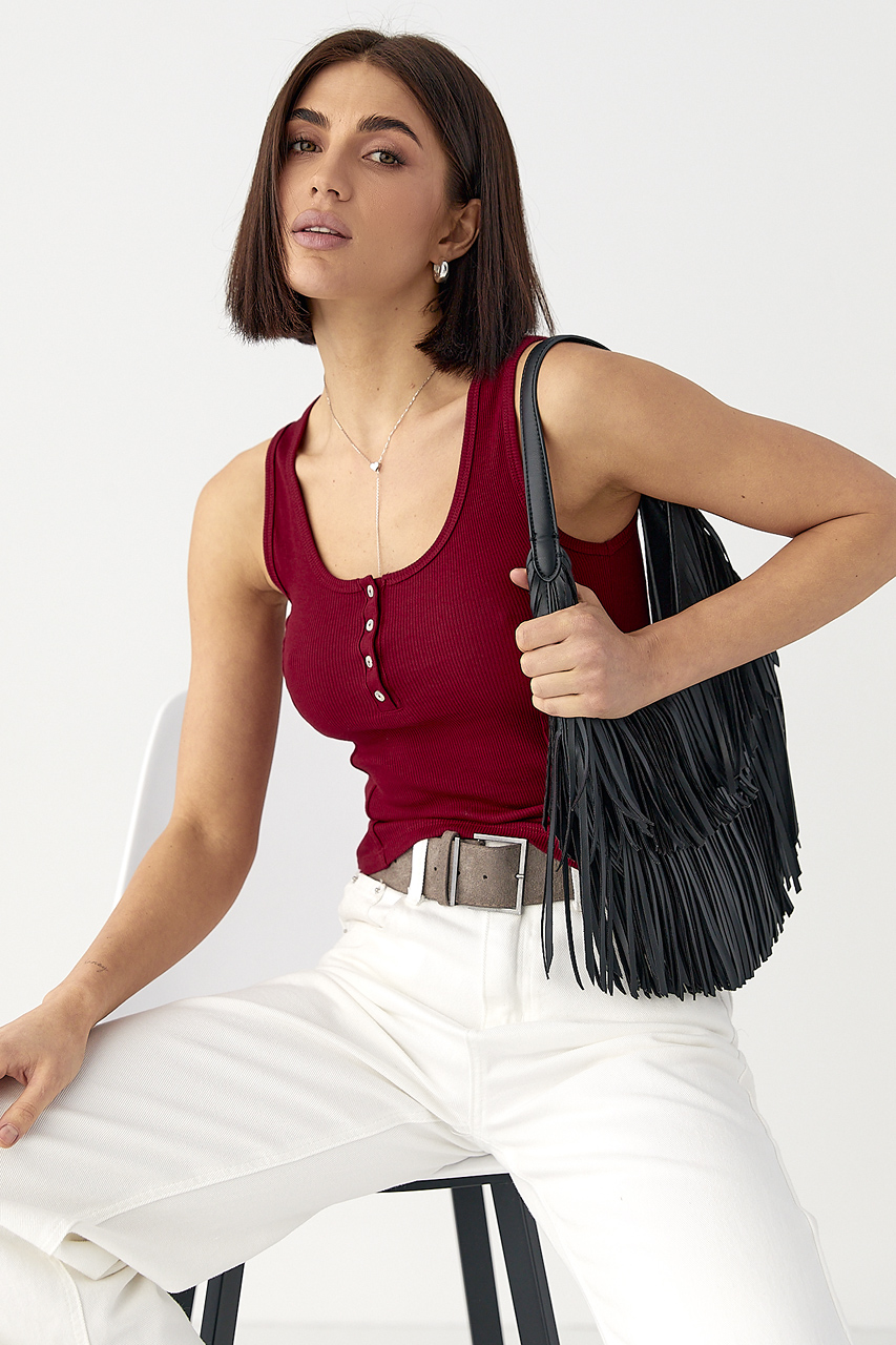 Доступные размеры :[S] Размер S:Довжина переду виробу, см: 57смШирина під проймами рукавів (над грудьми), см: 28смДовжина по боковому шву, см: 37смПриталена майка в рубчик із декоративними швами – стильна та комфортна модель, що чудово підкреслює фіг.. Читать полностью