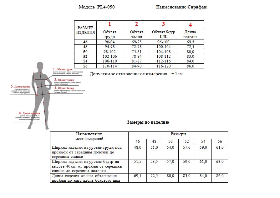 Размерная таблица