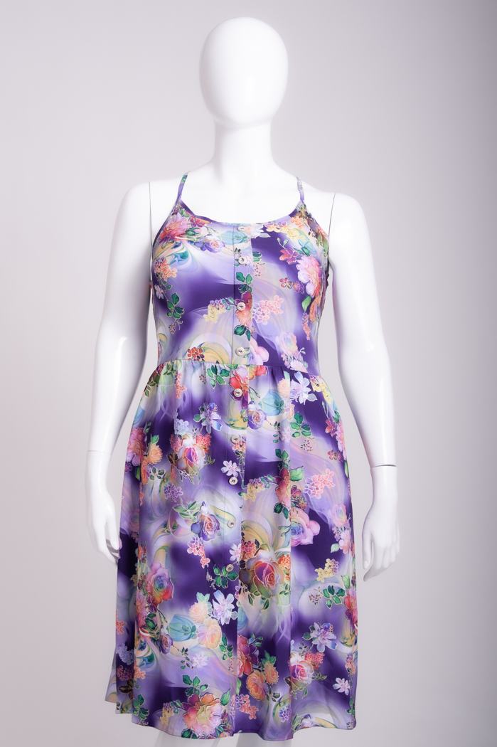 Доступные размеры :[50, 52, 56] Легкий сарафан приталенного силуэта, на бретелях. Спереди имитация застёжки на пуговицы. Бретели можно отрегулировать по длине. Верх спинки до талии собран на резинку «венгерка» в несколько рядовПроизводство: УкраинаСе.. Читать полностью