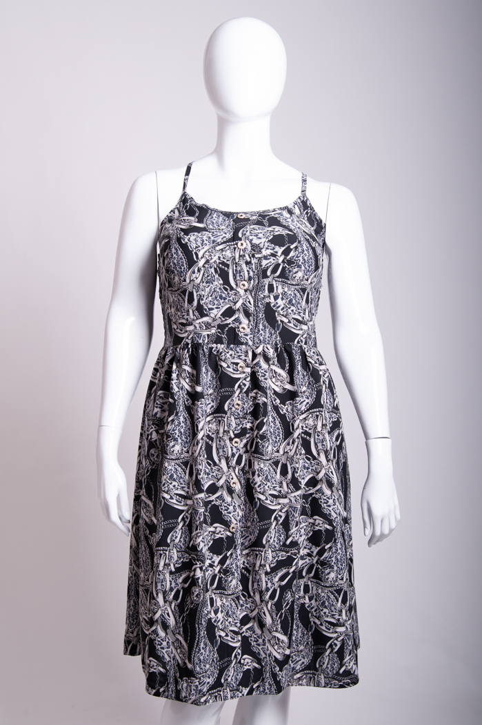 Доступные размеры :[50, 52, 56] Легкий сарафан приталенного силуэта, на бретелях. Спереди имитация застёжки на пуговицы. Бретели можно отрегулировать по длине. Верх спинки до талии собран на резинку «венгерка» в несколько рядовПроизводство: УкраинаСе.. Читать полностью
