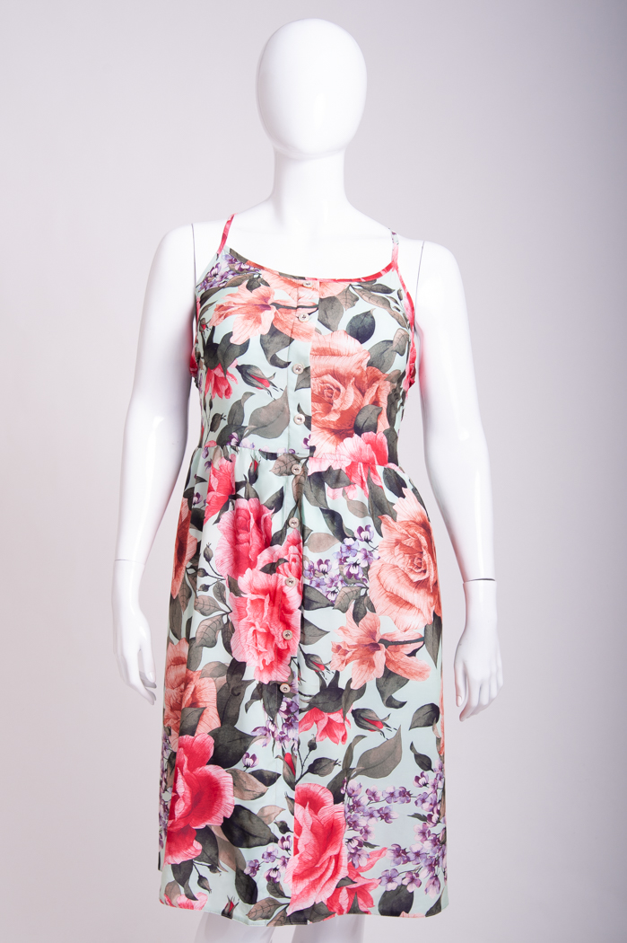 Доступные размеры :[50, 52, 56] Легкий сарафан приталенного силуэта, на бретелях. Спереди имитация застёжки на пуговицы. Бретели можно отрегулировать по длине. Верх спинки до талии собран на резинку «венгерка» в несколько рядовПроизводство: УкраинаСе.. Читать полностью