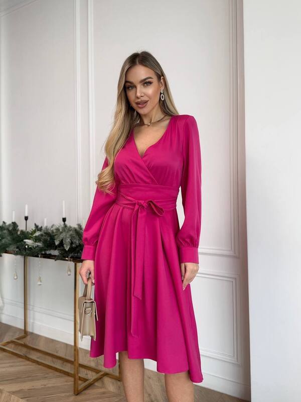 Отзывы о Платье женское из костюмной ткани с имитацией запаха расклешенное с поясом осенний зимний k-126233