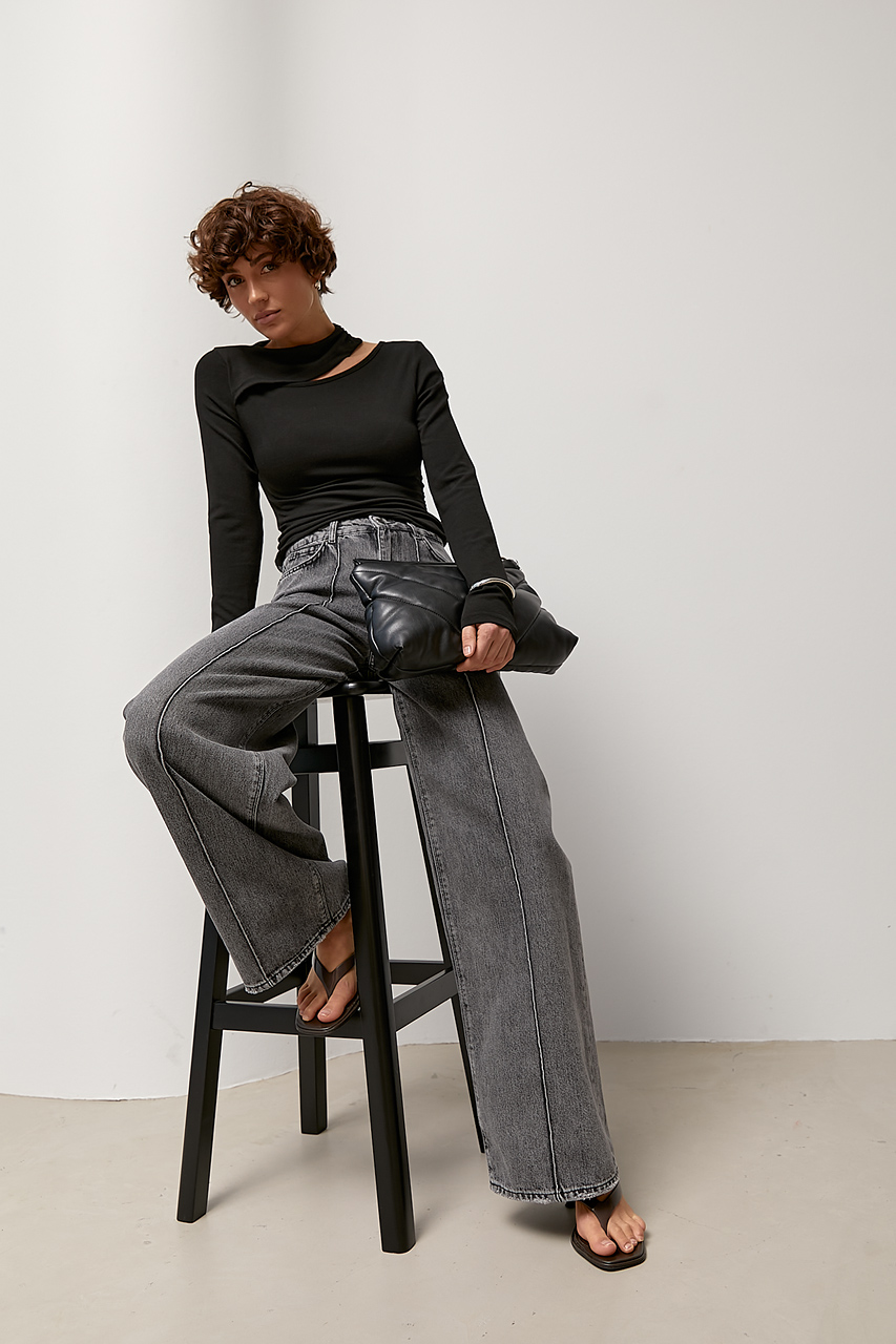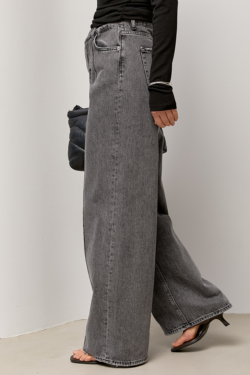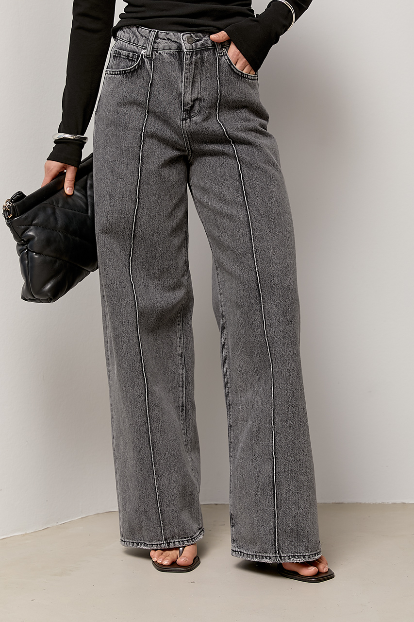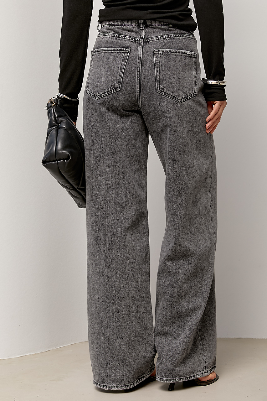Широкі прямі джинси з високою посадкою — стильна база з актуальними деталями. Однотонна модель має лаконічний вигляд і легко вписується в різні образи, а прямий широкий крій формує сучасний, подовжений силует.