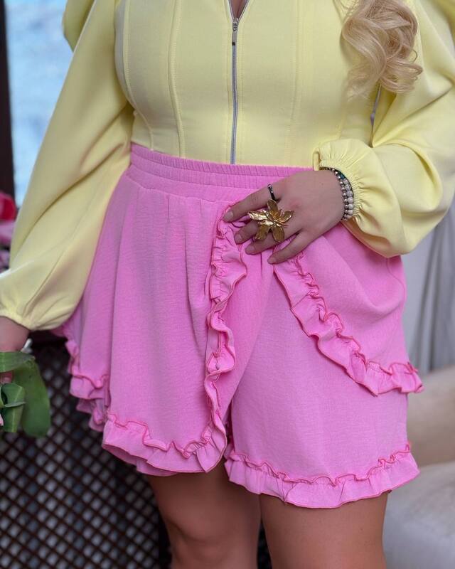 Расклешенный крой создает красивый объем по низу, а декоративная оборка по краю добавляет изделию нежности и игривости. Длина 42–46 см делает модель легкой и современной, хорошо сочетается с топами, блузами-корсетами, майками, футболками, рубашками и укороченными жакетами. Юбка-шорты подойдет для женственных летних образов, прогулок, отпуска, свиданий и стильных комплектов на каждый день.