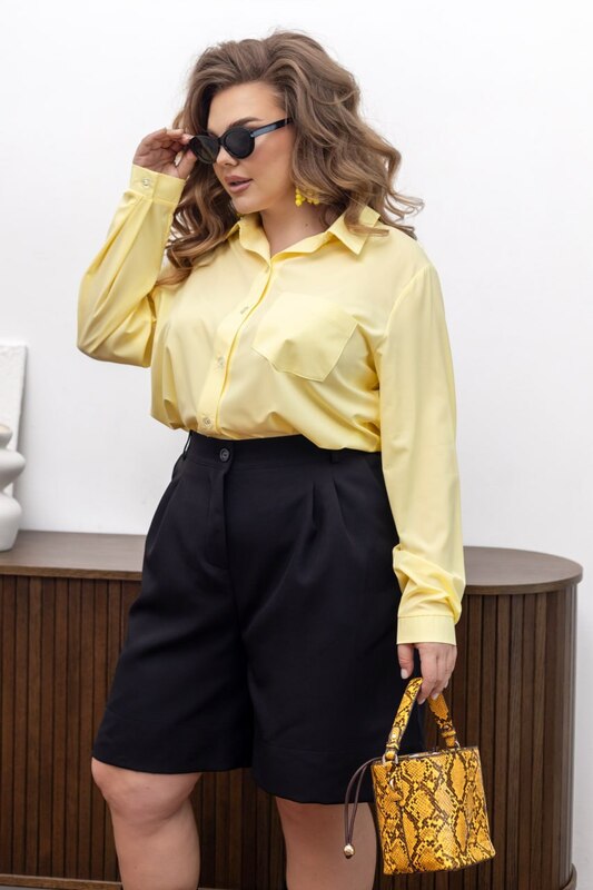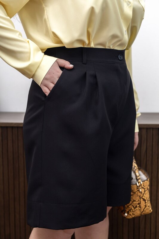 Длина изделия 59–64 см делает шорты универсальными для разных параметров. Модель легко сочетать с босоножками, туфлями, лоферами, кедами, сандалиями или сапогами, создавая как расслабленные, так и более выразительные городские комплекты.