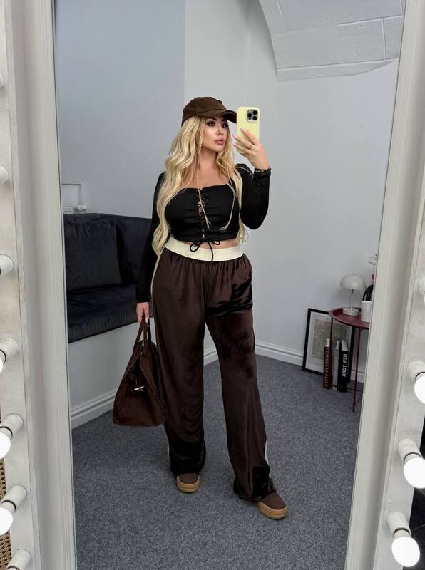 Такие брюки универсальны — они одинаково хорошо сочетаются как с кроп-топами и блузами, так и с худи или свитшотами. Это идеальный вариант для прогулянок, відпочинку або стильних образів у стилі casual. Мягкий турецкий велюр обеспечивает уют и тепло, а современный крой делает модель актуальной и женственной.
