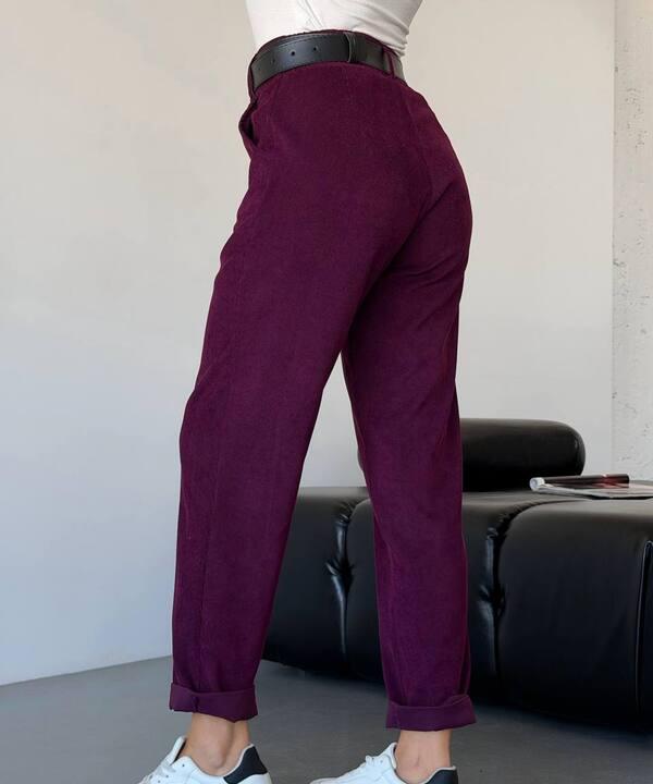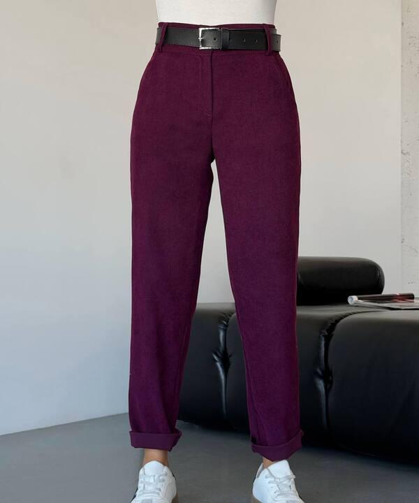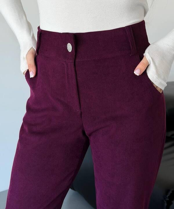 Главная особенность модели — приятная вельветовая фактура, которая делает образ более выразительным и интересным. Ткань смотрится благородно, добавляет глубину внешнему виду и создает ощущение уюта. За счет такой фактуры брюки выглядят не скучно, а более собранно и актуально, при этом остаются практичными для повседневной носки. Материал визуально делает модель более дорогой и помогает легко сочетать ее с разными вариантами верха — от базовых лонгсливов и гольфов до рубашек, свитеров, жакетов и уютных джемперов.