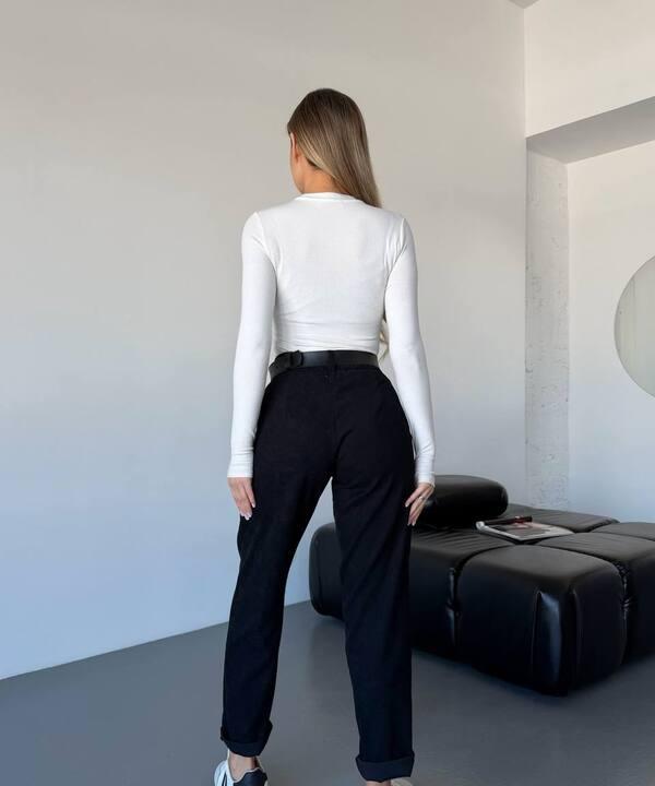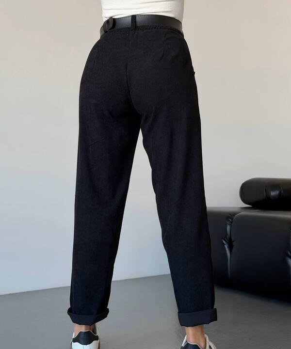 Модель выполнена из вельвета, благодаря чему брюки смотрятся выразительно и более интересно, чем базовые повседневные варианты из гладких тканей. Фактура материала придает образу глубину, делает его более уютным и визуально дорогим. Ткань выглядит аккуратно, хорошо держит форму и помогает создать образ, в котором есть баланс между комфортом и внешней привлекательностью. Это удачный вариант для прохладного сезона, когда хочется выбрать что-то удобное, мягкое и при этом стильное.