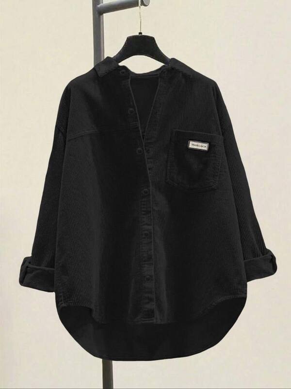 Отзывы о Рубашка женская из микровельвета удлиненная оверсайз с нагрудным карманом на пуговицах осенне-зимняя k-126768