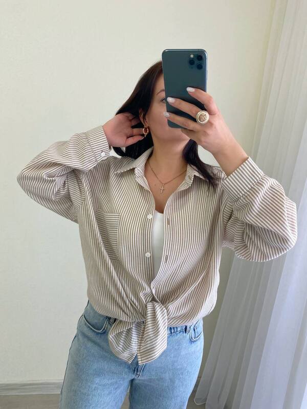 Классический воротник, застежка на пуговицы, длинные рукава и накладной карман делают рубашку удобной, практичной и универсальной. Вертикальная полоска визуально вытягивает силуэт, придает образу аккуратность и делает модель особенно актуальной. Рубашку можно носить как самостоятельную вещь, поверх майки или топа, в полностью застегнутом виде или расстегнутой как легкую накидку. Она отлично сочетается с джинсами, брюками, шортами, юбками и льняными комплектами, позволяя создавать множество образов на каждый день.