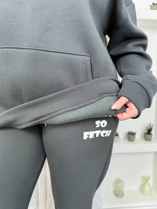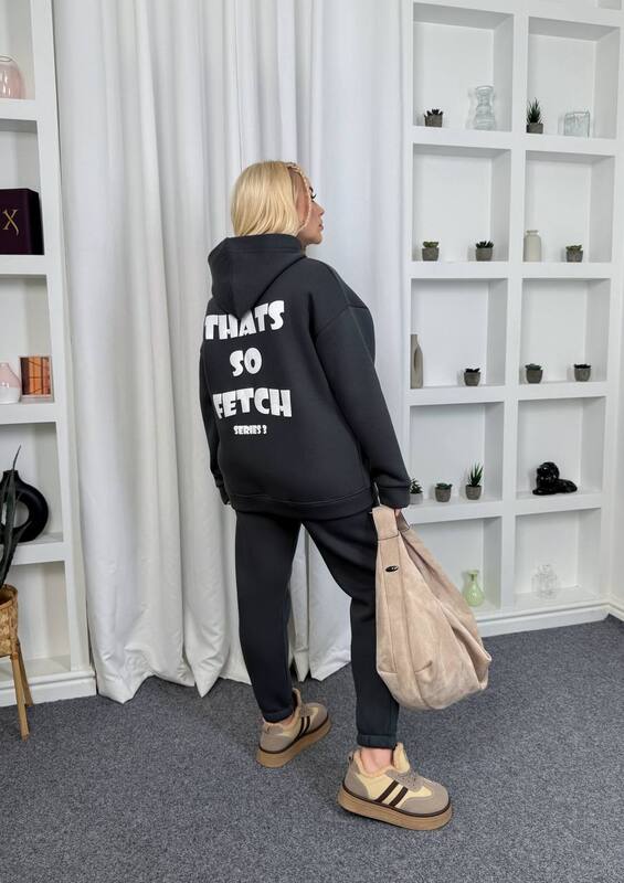 Модель выполнена в современном оверсайз-крое и состоит из худи и брюк. Верх оснащён капюшоном, манжетами на рукавах и вместительным карманом-кенгуру, что делает образ стильным и практичным. Лаконичный принт на груди добавляет динамики и подчёркивает трендовость модели. Брюки прямого кроя с эластичной талией и манжетами по низу обеспечивают удобную посадку, не ограничивая движений.