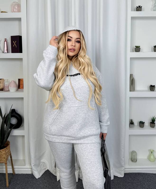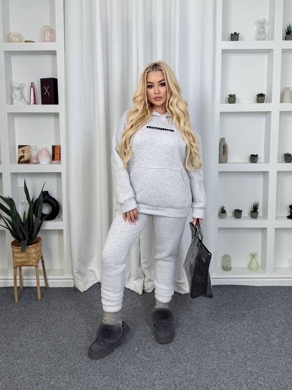 Модель выполнена в свободном оверсайз-крое, обеспечивающем полную свободу движений и комфорт при носке. Верх представляет собой уютное худи с капюшоном, вместительным карманом-кенгуру и стильной надписью на груди. Брюки прямого силуэта с мягкой резинкой на талии и манжетами по низу идеально садятся на фигуру, подчеркивая её достоинства и создавая гармоничный силуэт.