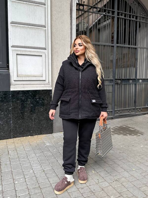 - Ткань: Костюм-трихнитка з начесом. Желетка-баранчик Букле ,підкладка, синтепон 100-ка